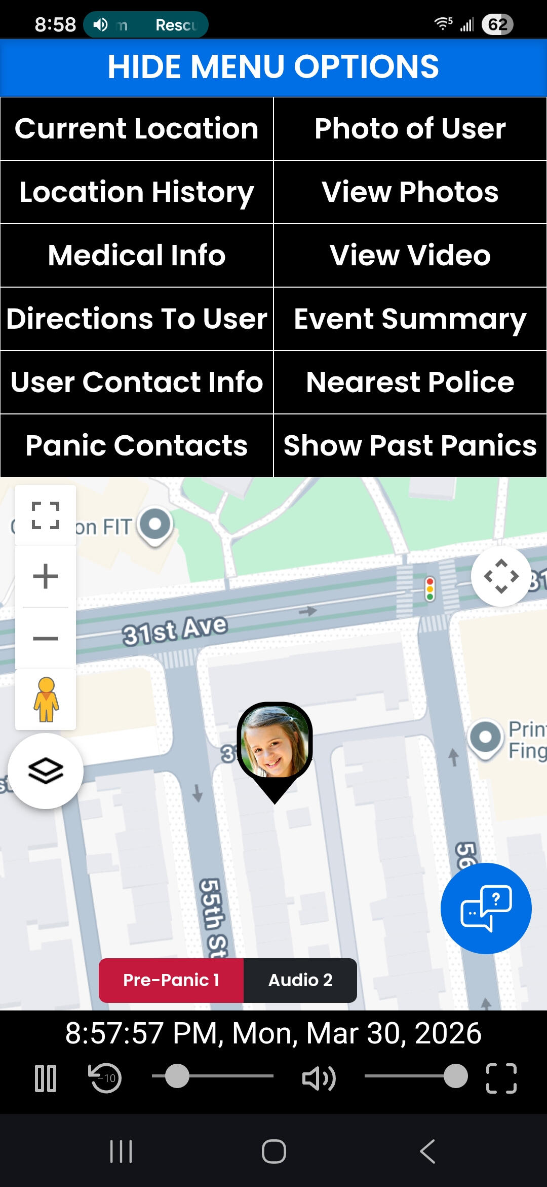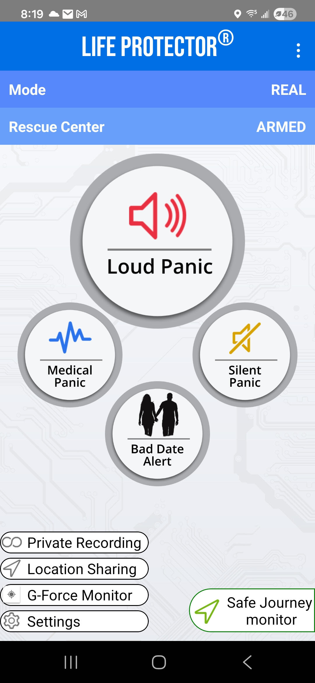 A single press pattern on your panic ring silently and discreetly signals your Life Protector® app to alert your emergency contacts and Rescue Dispatch Center, giving them unprecedented, textured details about your situation (including recordings in the lead-up to a crisis, before it even begins — patented feature) through your own rescue cockpit website.